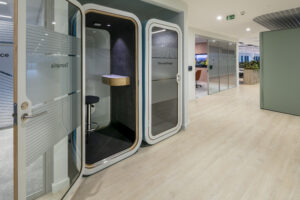 Meeting pods required specialist handling. Hunters coordinated directly with Framery and Mute, arranging for their fitting team to receive manufacturer training in mainland Europe. This ensured pods could be safely decommissioned and reassembled without damage, protecting Skyscanner’s investment in high‑value assets.
